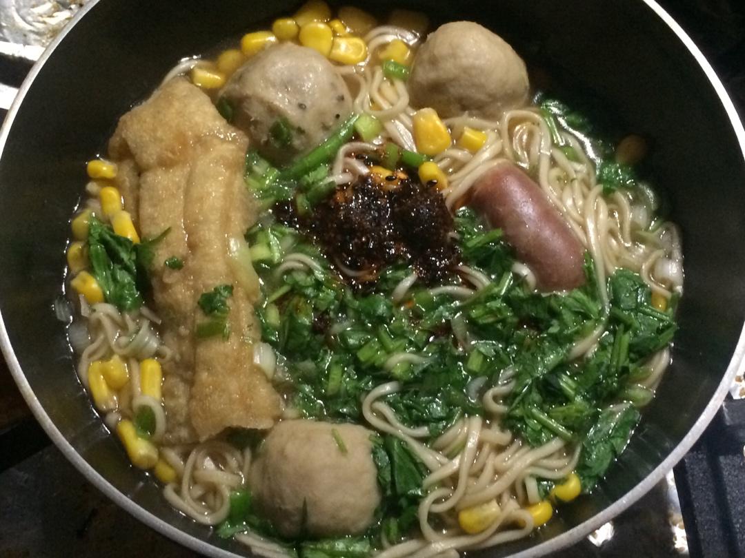 卤猪肘的卤汤用来煮面~面条是自制的嘿嘿(压面机真的好好用啊好好用啊,强迫症看着粗细均一的面条逐渐出现时那个爽感真是无与伦...
