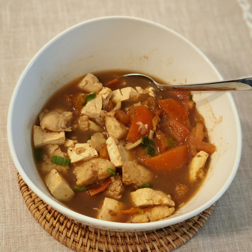 配菜用了两个西红柿、红椒、黄椒、青菜、一点点红葱头。肉用的是牛绞肉。加完十三香之后香味就出来了。耶里夏丽的味道,真棒👍#...