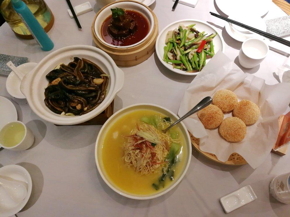 现划淮安软兜(砂锅韭黄鳝鱼)。金腿虾仁煮干丝。鸡枞菌荸荠芦笋莲藕小炒。桂花糯米藕。菌菇上汤苋菜,萝卜丝酥烧饼。#晚餐•2...