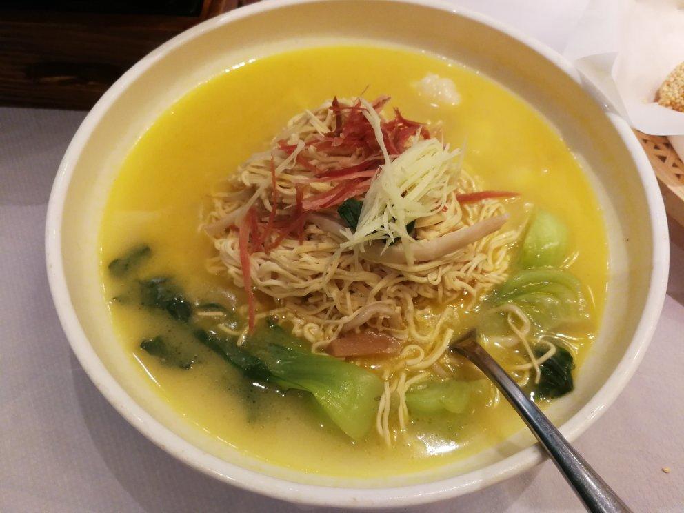 大煮干丝。金腿,虾仁,小青菜,干丝。金灿灿的,味道比较清淡。