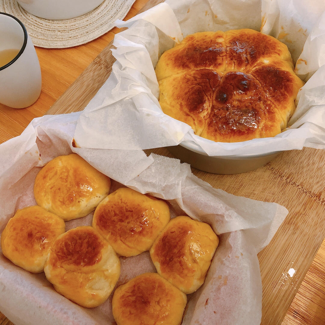 自己做的面包有一种朴实的香味。没用面包机,纯手打,七月的厨房里,我妈捏的大汗淋漓。放入模具后直接进烤箱了,最后效果不是很...