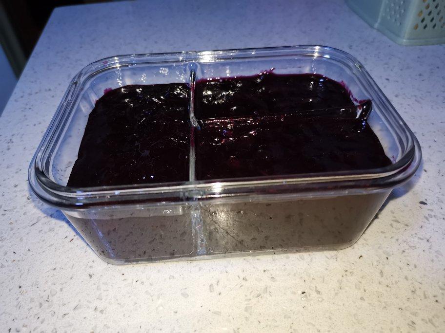 接近2斤蓝莓,放了160g糖,半个偏大柠檬汁约50g,成品颜色好看,装了一个保鲜饭盒量,就是柠檬汁放多了,有股柠檬酸味~...