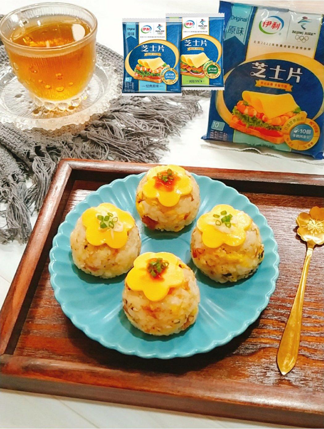 芝香四溢的香浓香芝士鸡蛋饭团~用伊利芝士片制作👍好吃!好吃!敲好吃!