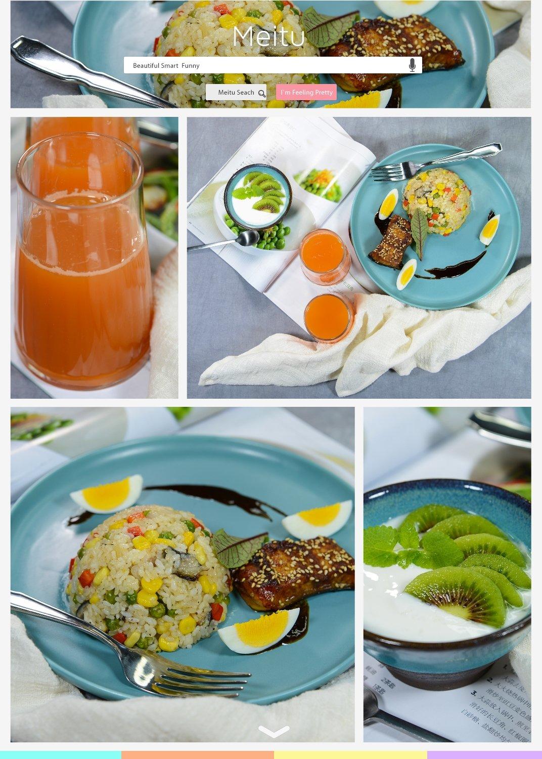 银子家早餐:烤鳗鱼炒饭、猕猴桃酸奶、苹果胡萝卜汁。