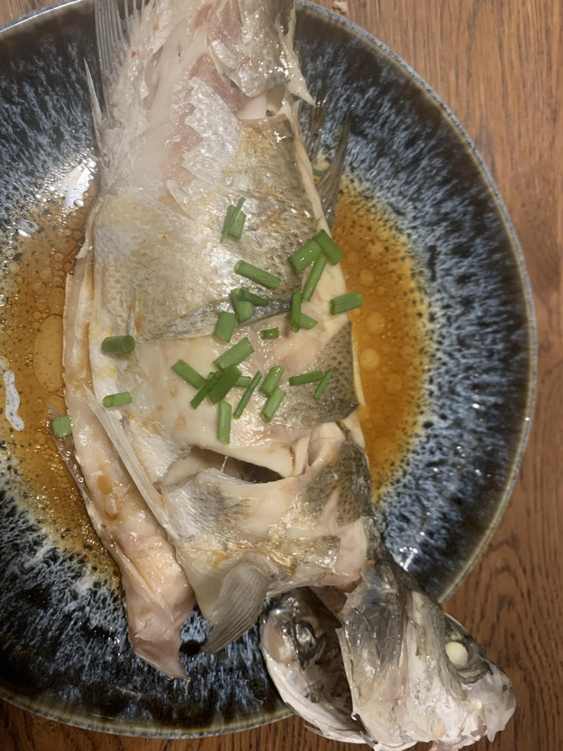 鱼店推荐了bronzini,欧洲海鲈鱼,用老师清蒸的方法处理,一点不腥。