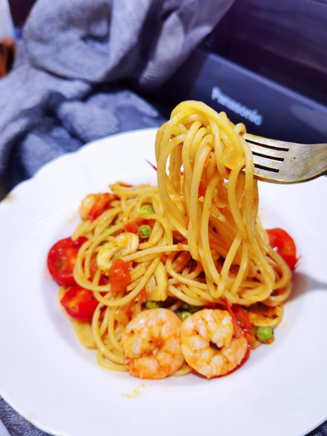 番茄虾仁意面—既好看又好吃,喜欢!🤪🤪