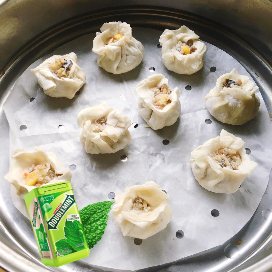 简单的早餐:自制的玉米🌽蘑菇🍄鲜肉烧麦+煎蛋🍳一枚。