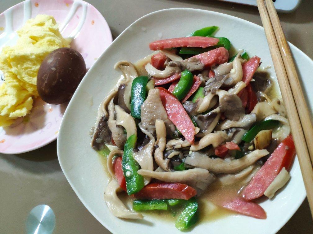 青椒火腿炒蘑菇