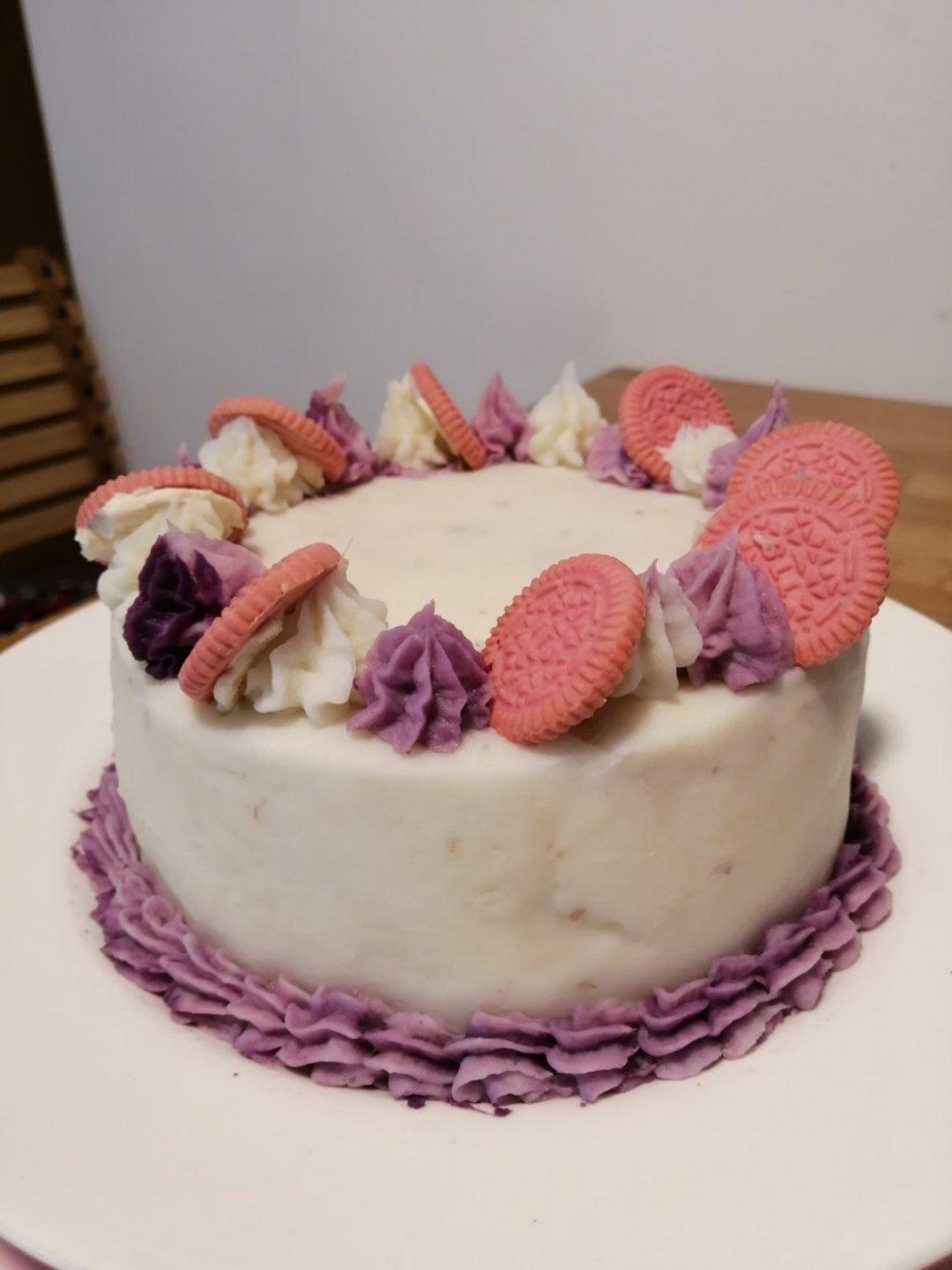 佳佳奶奶今天生日 老糖尿病患者 也不爱吃奶油 做了紫薯 山药泥 打扮的粉粉的 也是满漂亮的嘛! #午餐•2020年10...