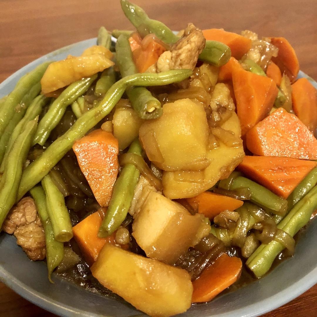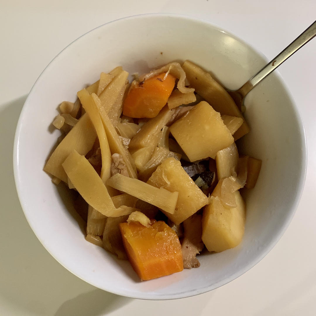 买不到牛蒡和藕,用欧防风代替了,味道很奇特。