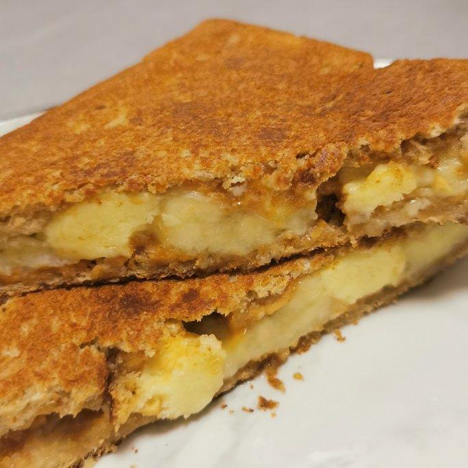 图有点糙 压的稍微久了一点 一根香蕉➕花生酱➕奶疙瘩 奶疙瘩和香蕉融在一起真的好好吃!
