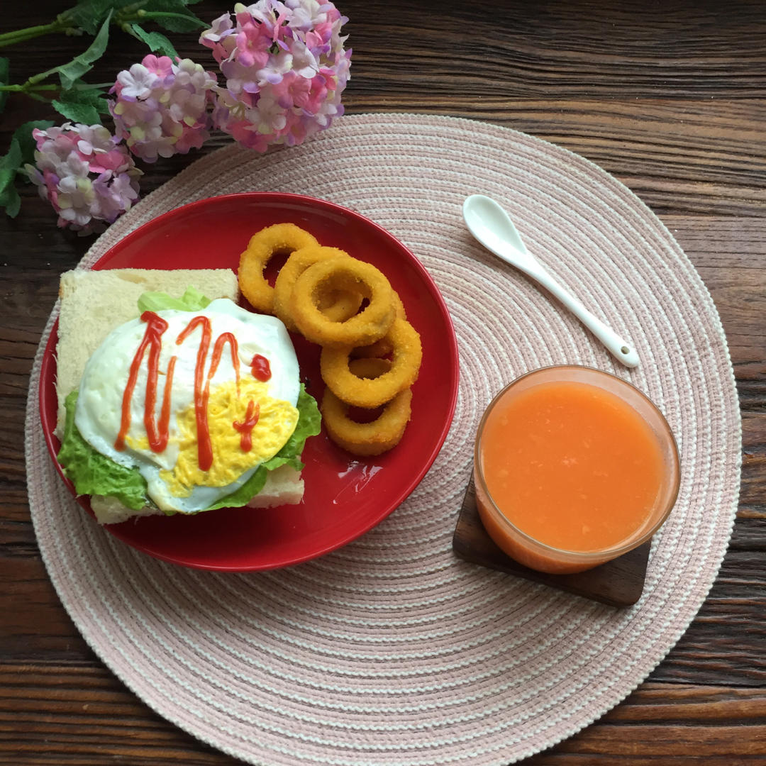 苹果萝卜汁🍹+吐司煎蛋🍳+洋葱圈