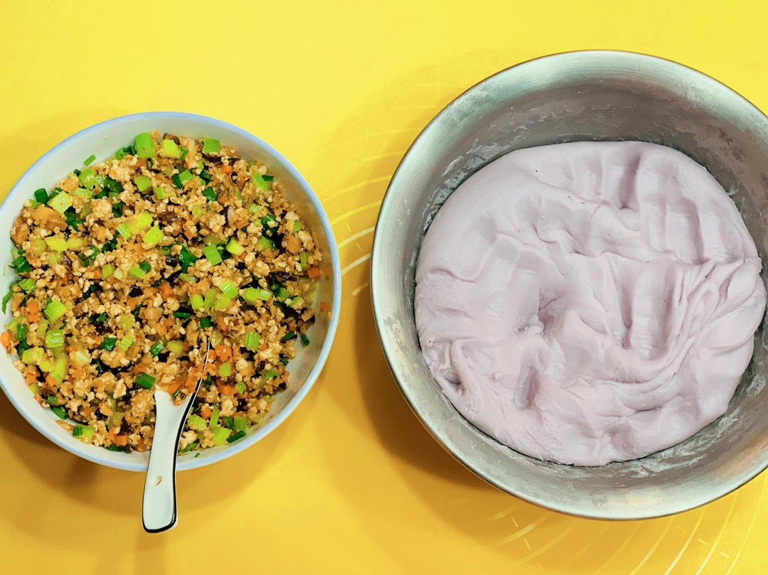 准备材料用的时间比较久,实际包很快。蒸芋头可能水分多了,加了好多木薯淀粉,都怀疑是不是要扔掉重来…