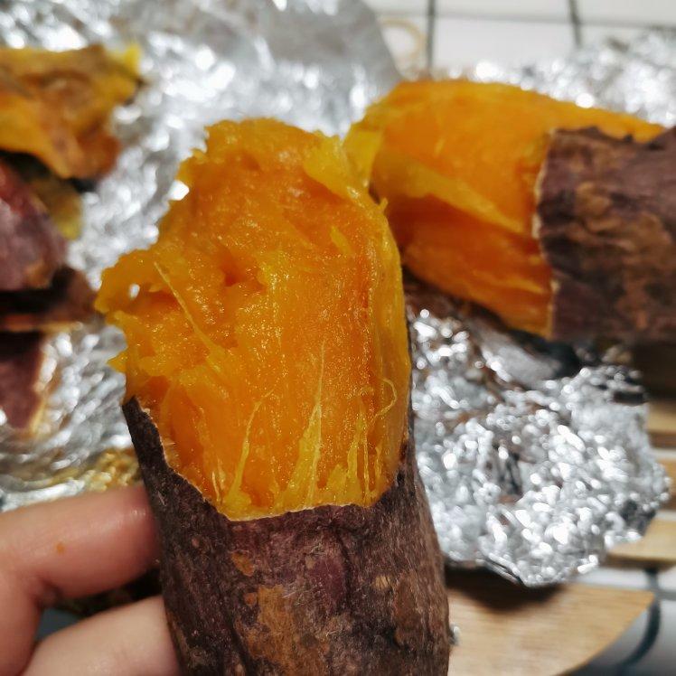 我懒得刷烤篮但又不想影响热风循环的效果,所以拿锡箔纸把红薯挨个包起来了。因为感觉我家红薯比博主的红薯更圆滚滚一点,所以2...