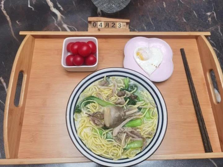 早安~今天吃鸡汤面,煎蛋,圣女果
