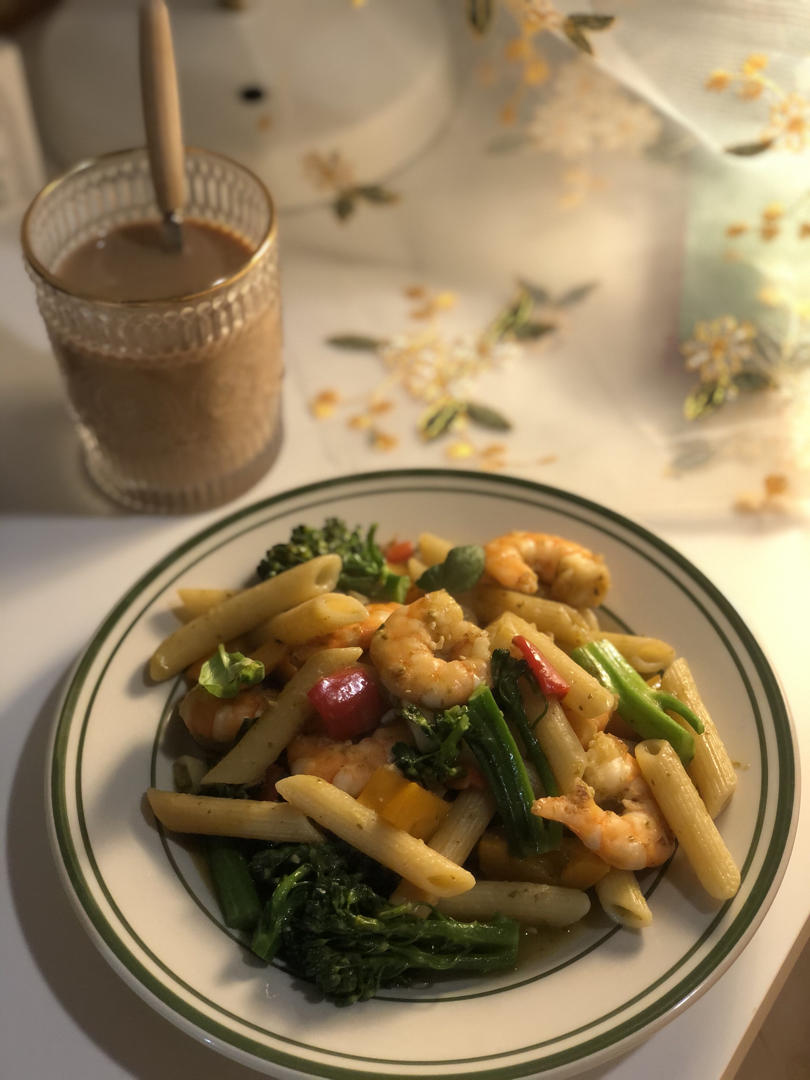 最爱的意面penne。煮了一杯无糖奶茶,天冷啦,要吃的暖一点。