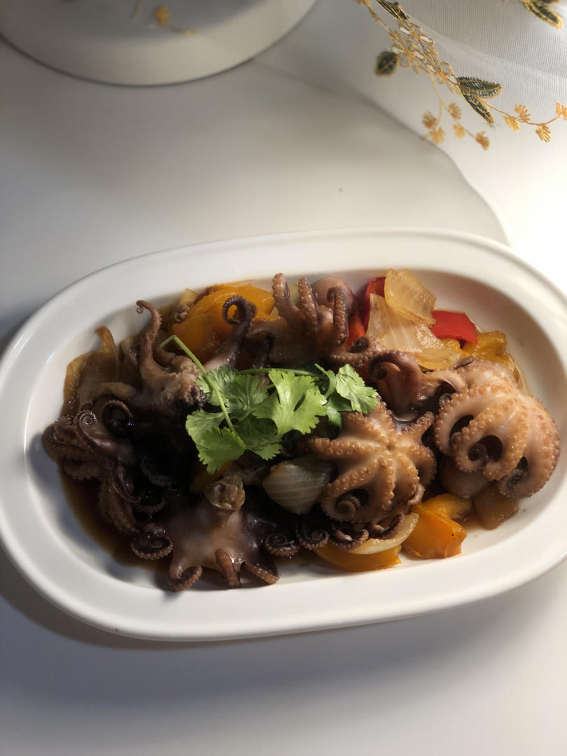 忽然想吃海鲜。晚上做了彩椒小章鱼。