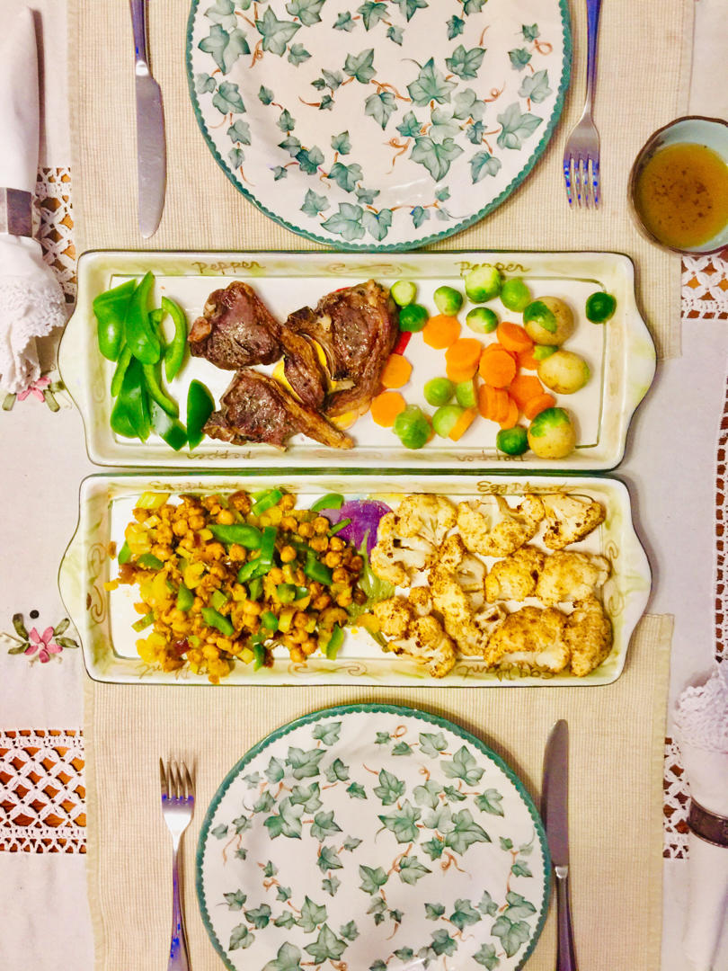 先生吃小羊排,我吃烤菜花配咖喱鷹嘴豆。第一次用烤箱烤菜花,有點意外地好吃,和乾煸菜花有異曲同工之妙,而比乾煸用油少又不用...