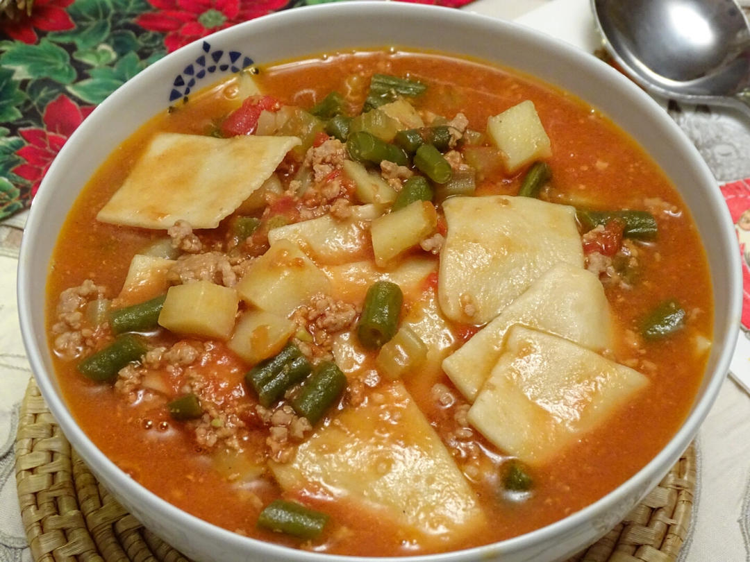 一人一碗面片汤,今天懒了,面片直接用机器压的。