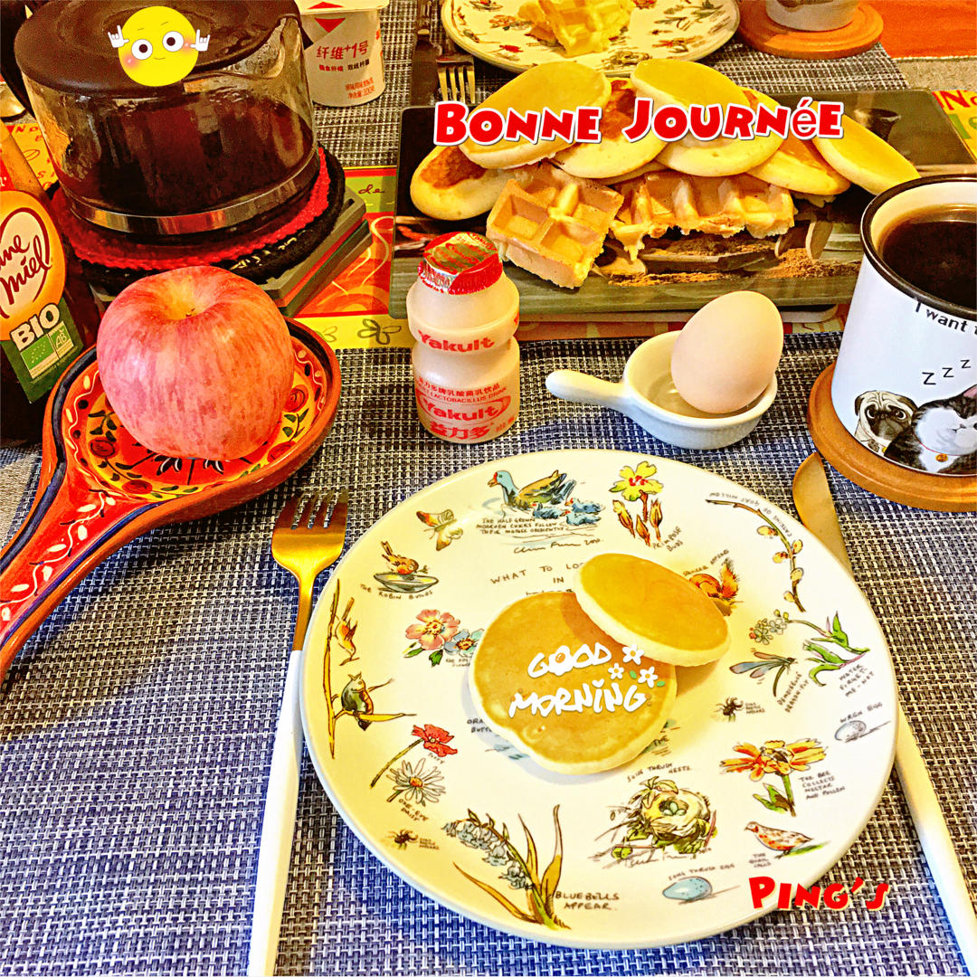 一早,贤惠的偶做起了松饼🥞和华夫饼🧇,煮了咖啡等等,📷,记录📝,😂