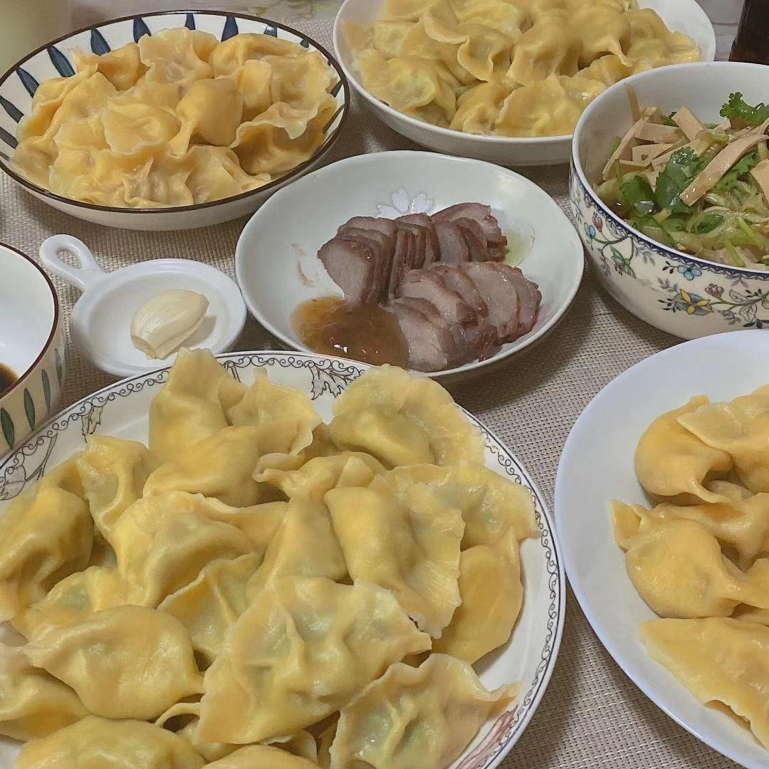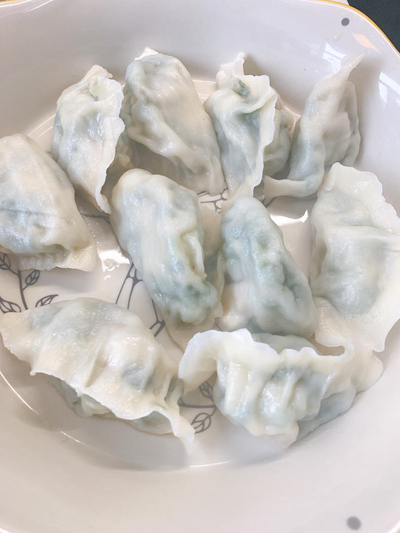 虾仁+夏贻贝韭菜水饺,稍微多加了一丢丢盐,口略重,妈妈说因为韭菜不吃盐,下次还是要少点...