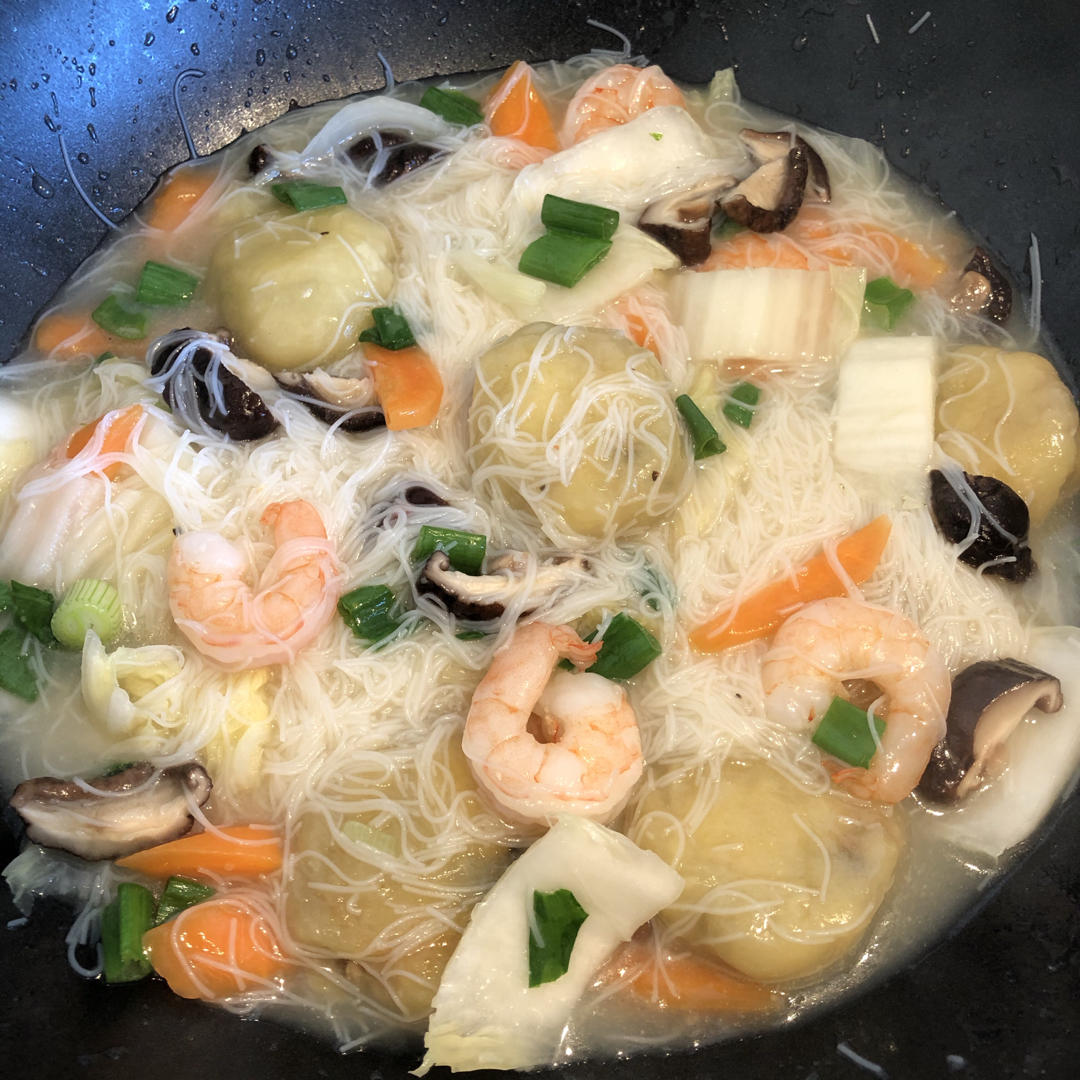 我给自己做了一份有点家乡味道地瓜丸子米粉汤面。P...