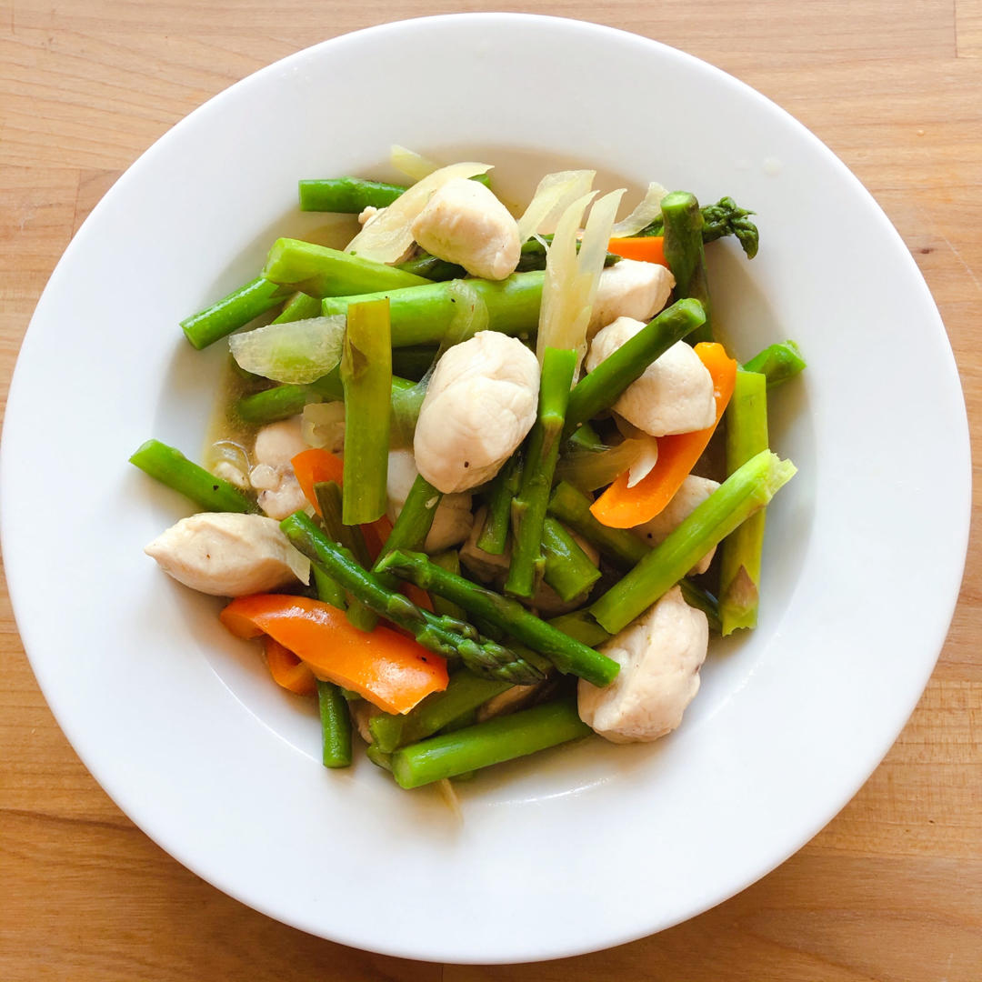 健康少油的晚餐:芦笋炒鸡肉 + 蒜香茄子🍆