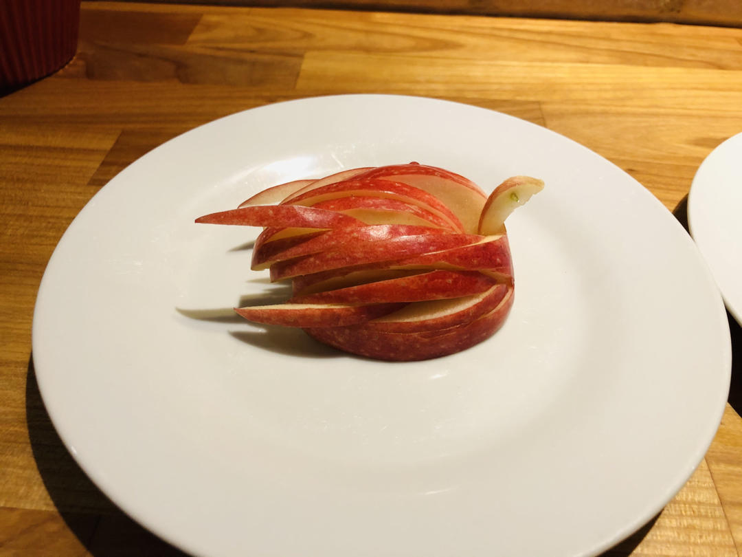 昨天拜师学来的苹果天鹅🦢,今天试了一下,有点难,刀功不好,变成了两只受伤的短脖子天鹅。😂