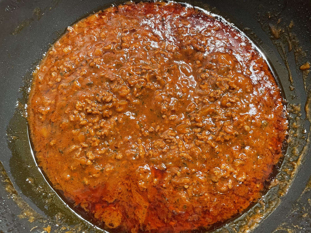 这是我第一次做肉酱意大利面。家里刚刚好什么材料都有,就煮了400g的牛肉碎。我煮了一个半小时。真的超好吃的!#午餐•20...