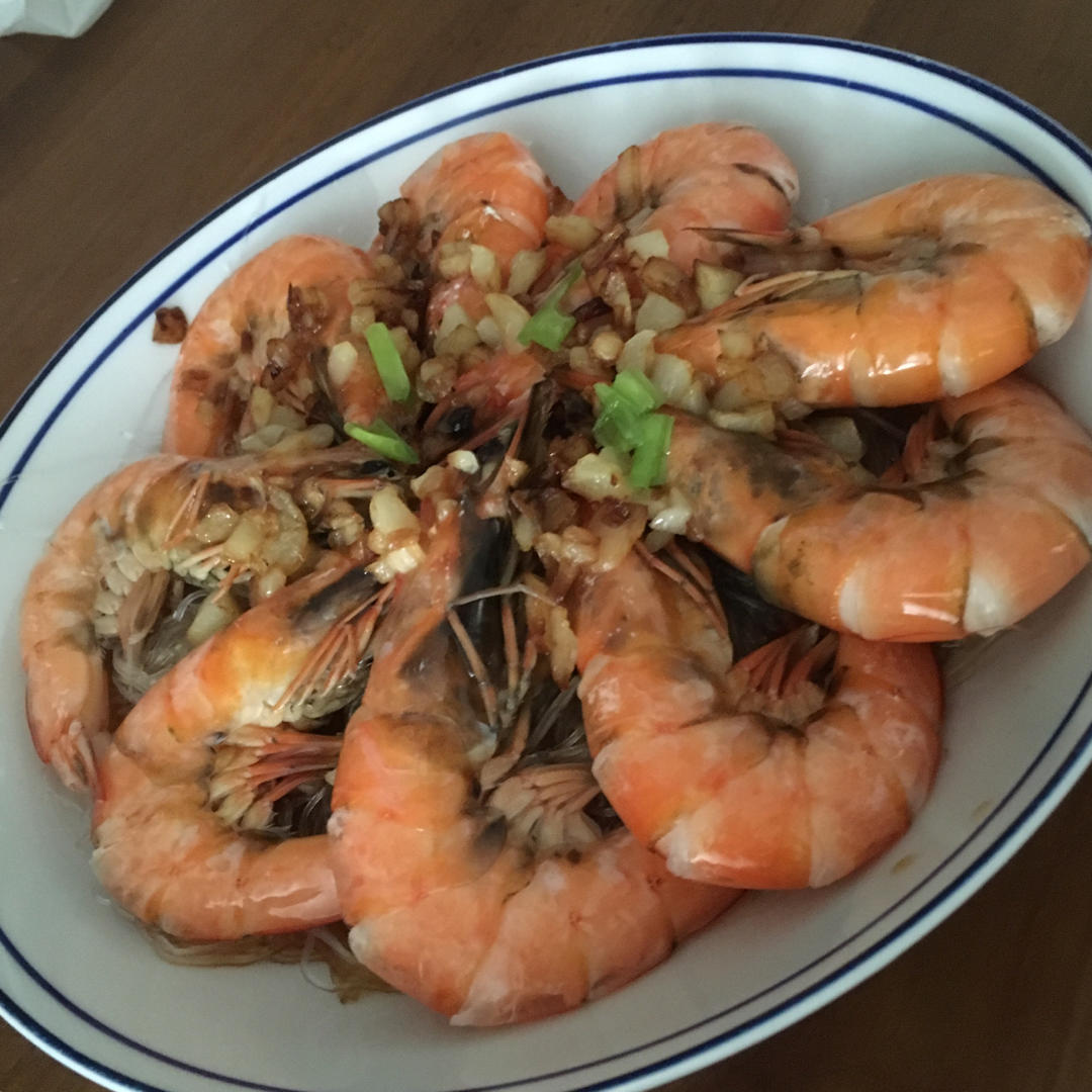 肉质软嫩的灰虾多了韧性, 戳挑虾线使香蒜油稍入味。菜谱简单好味👍🏻, 蒸5分钟够够的