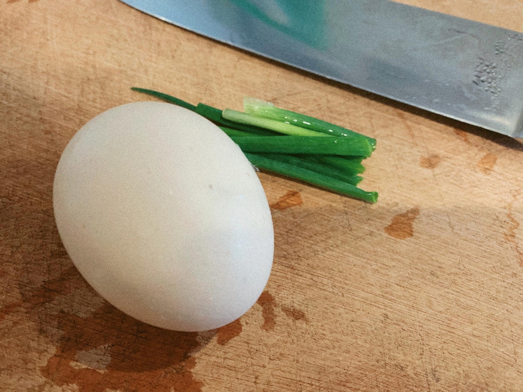 食材备用:鸡蛋一个、香葱、香菇