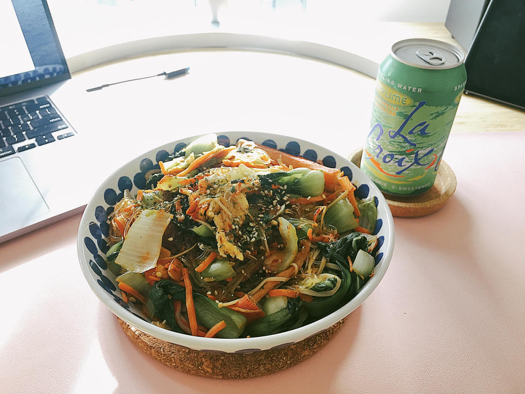 满满一碗蔬菜鸡蛋炒粉儿嘿嘿