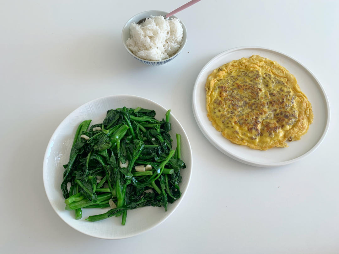 菜甫煎蛋,炒芥兰苗,煎羊排