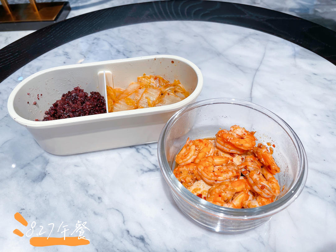 8.27午餐:杂粮饭,凉拌虾仁,炖白菜。
