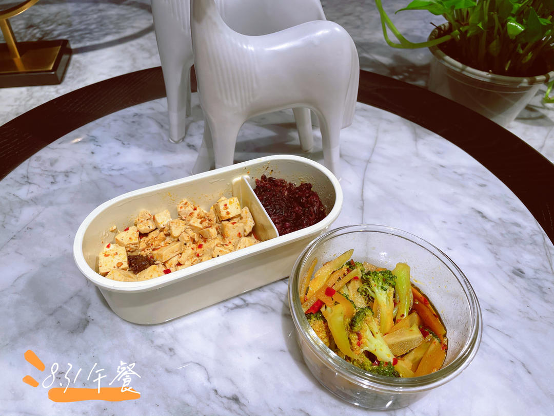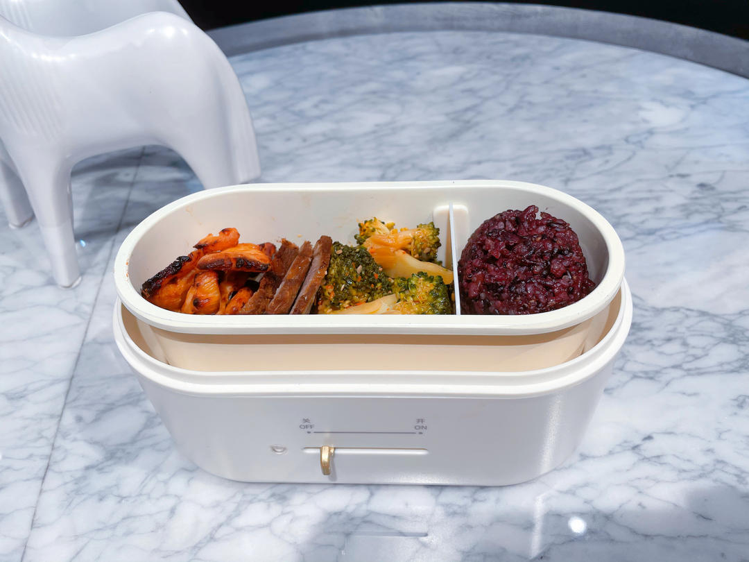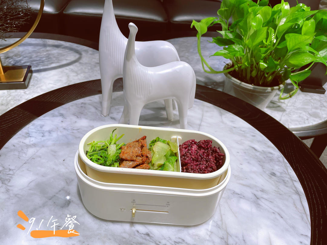 午餐:杂粮饭,凉拌西蓝花,酱牛肉,烤鸡胸肉。