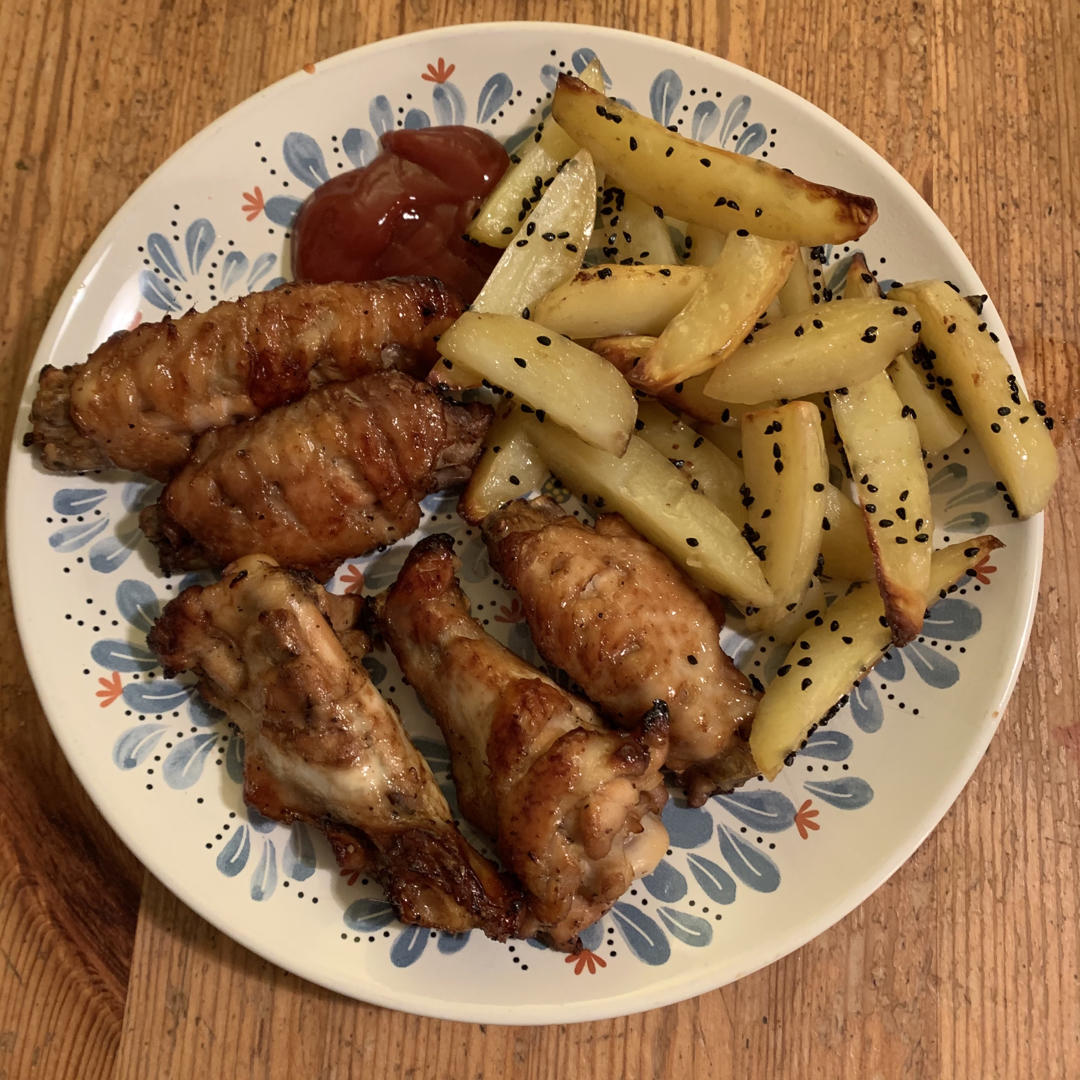 不到一斤的小羊排洒少许橄榄油 220度烤0.5h 翻面再烤15mins 配上烤好的土豆胡萝卜孢子甘蓝 很绝的晚餐#晚餐•...