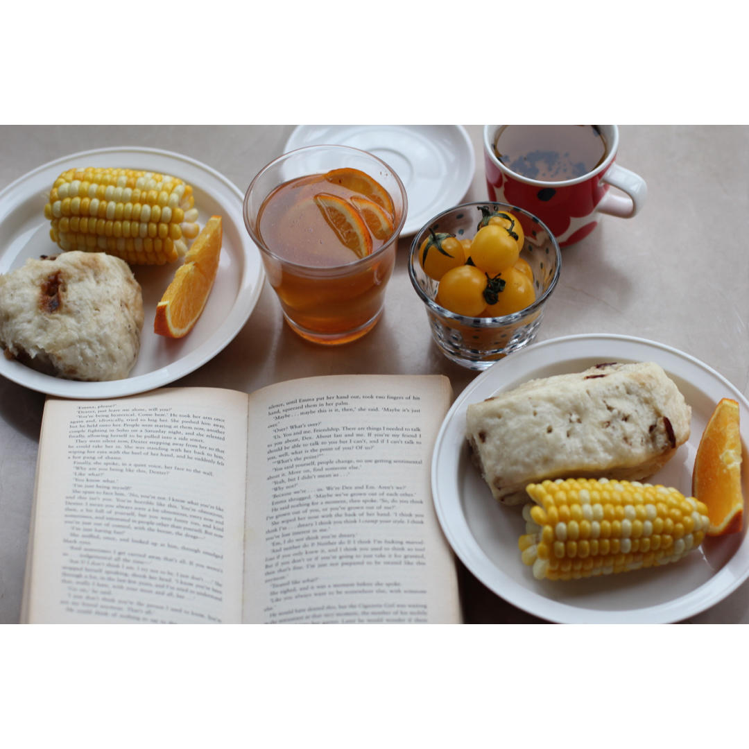 橙子紅茶佐玉米、桂圓饅頭