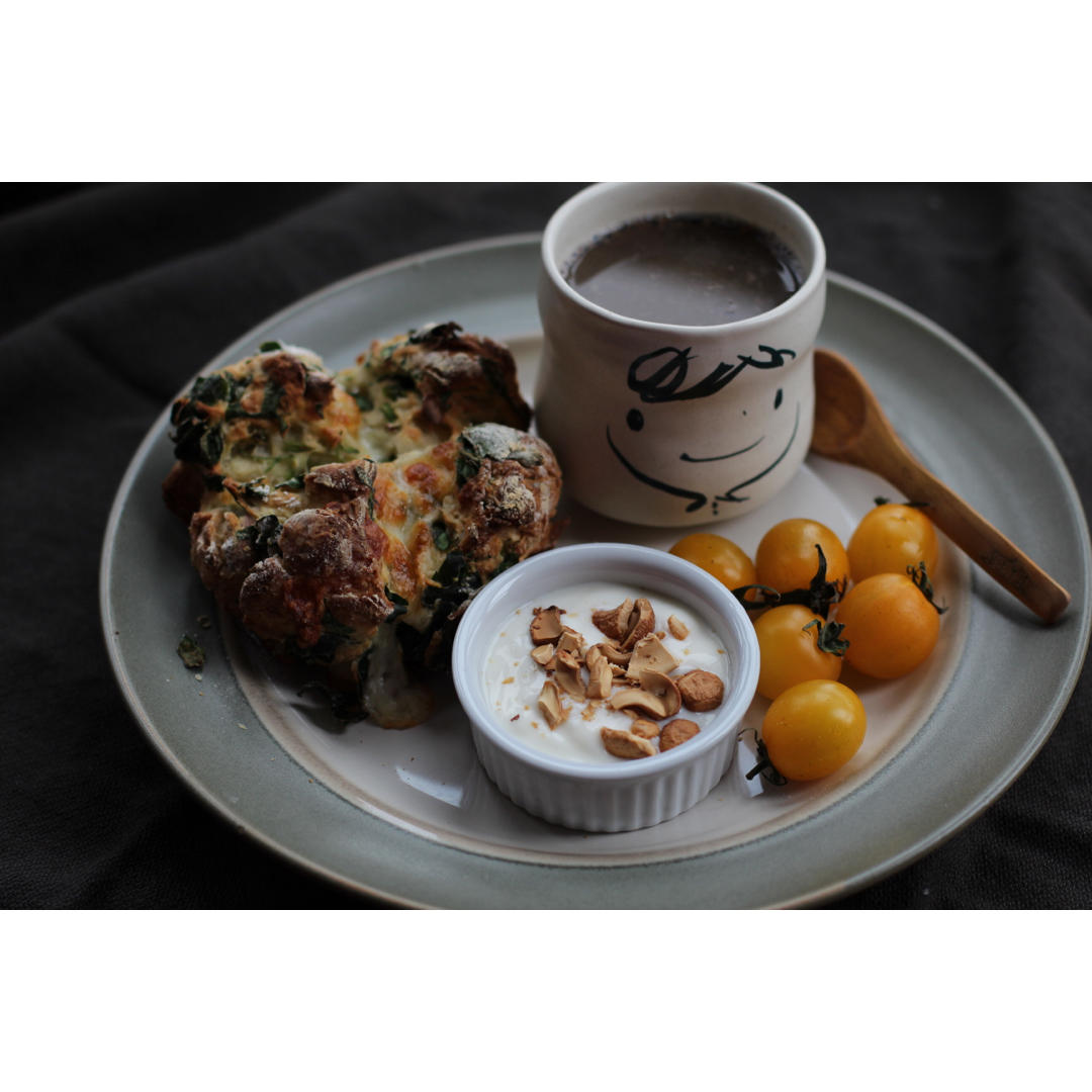 黑芝麻糊佐臘肉菠菜丹波麵包、番茄、酸奶