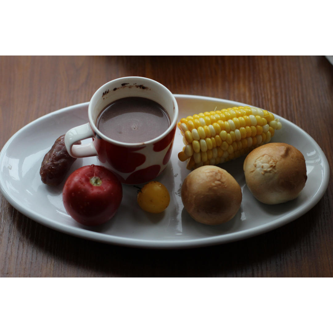 無糖黑芝麻糊佐豆乳吐司、番茄、煎蛋