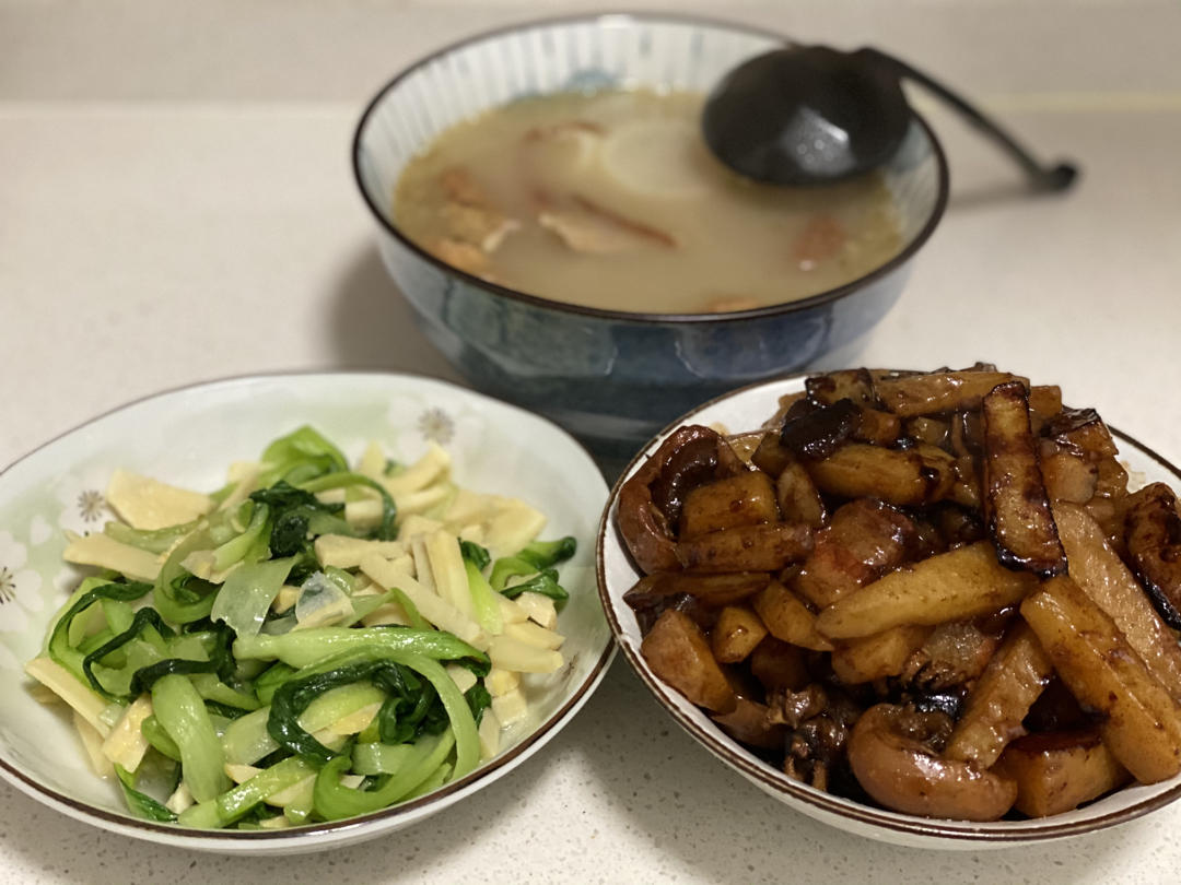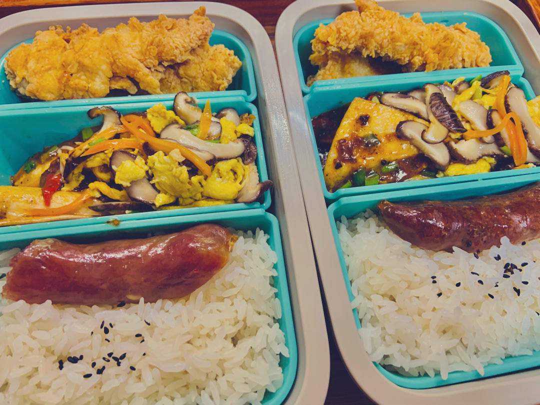 午餐🥣:无骨鸡排,香菇炒鸡蛋,葱香煎豆腐