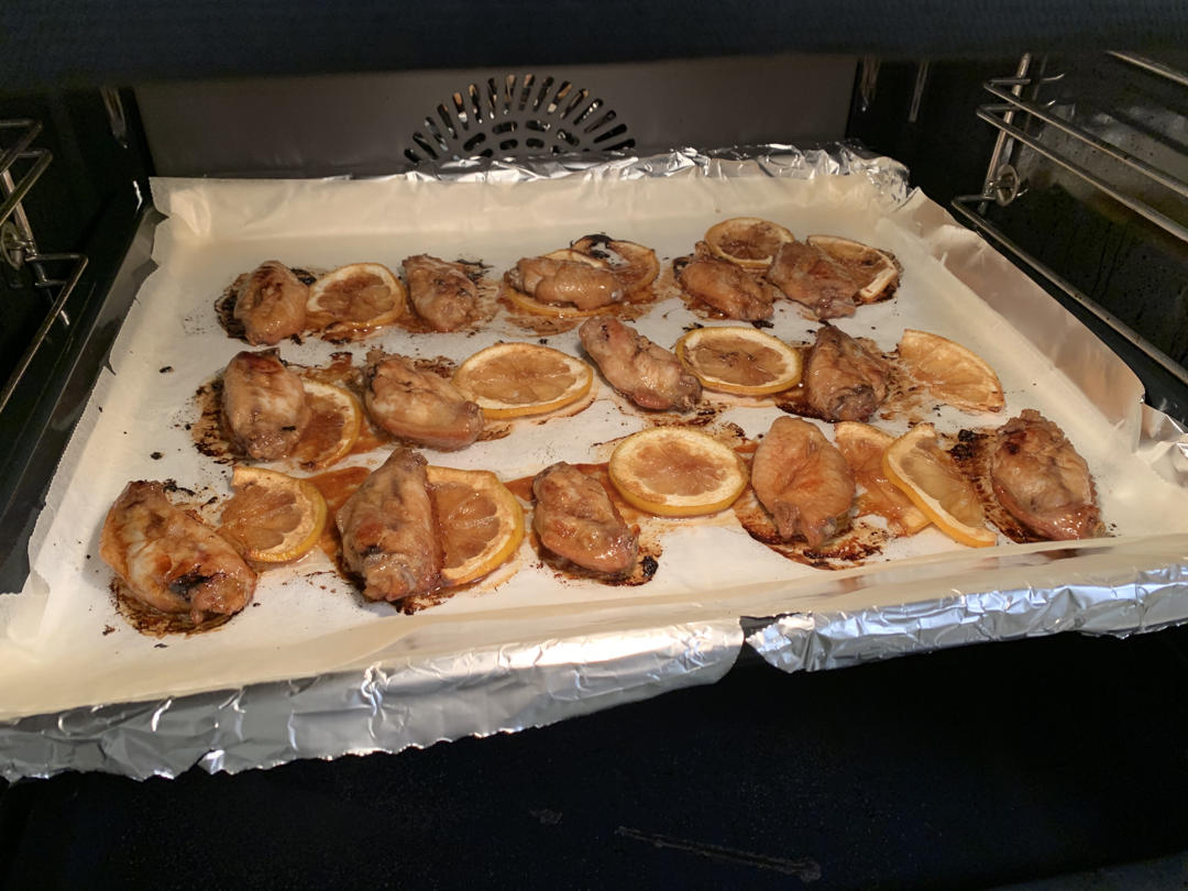 烤了14个鸡翅?好像蜂蜜放的不够多,吃的时候还是吃得到一丢丢柠檬的酸味。不过还是很好吃...
