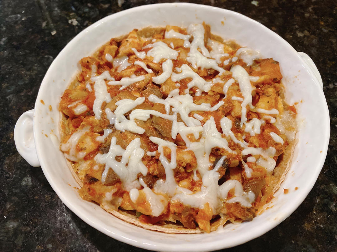 披萨酱炒蘑菇和鸡...