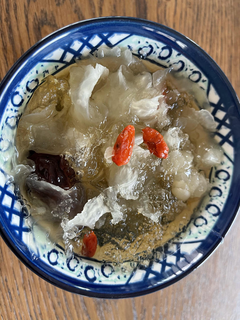 煮了碗酒酿红糖红枣姜茶小圆...