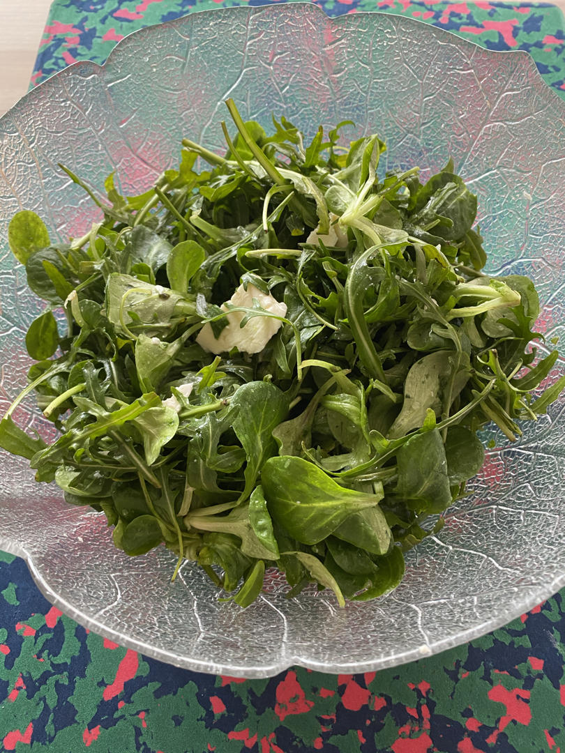 双菜加mozzarella奶酪色拉有点单调有点冷,炒一个杂葱平菇鸡蛋铺在上面,暖了也饱了...