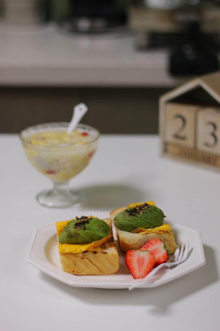 早餐想不起来吃什么的时候,面包+鸡蛋+牛油果准没错,今天磕出来的双黄蛋![胜利]
