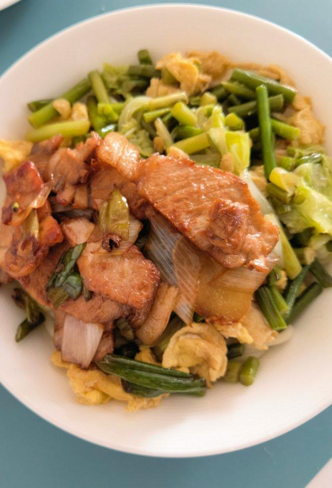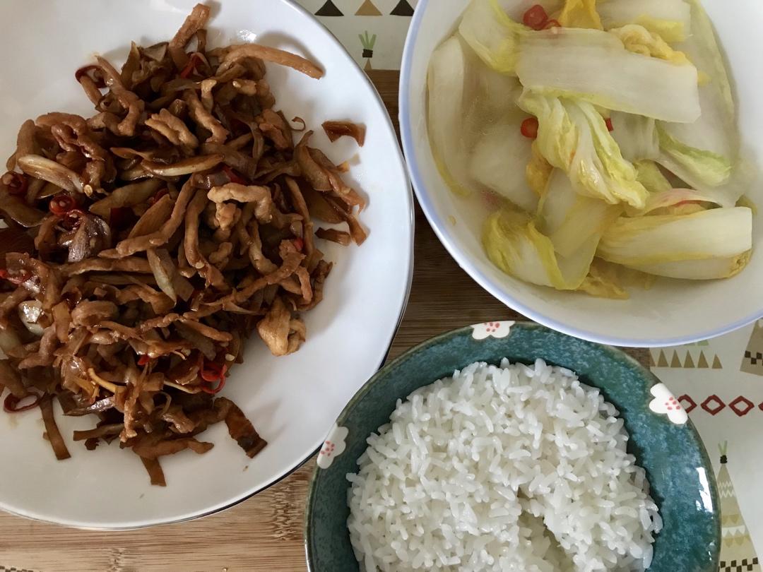 【干扁豆丝炒肉+娃娃菜】