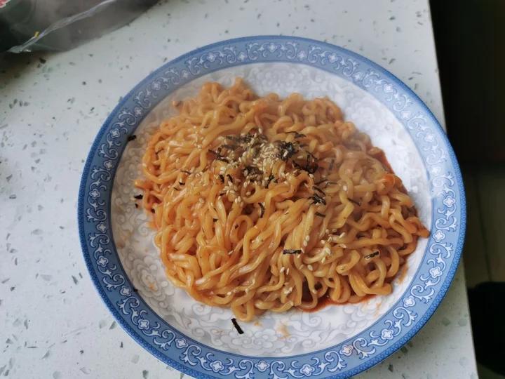 原来火鸡面的官方做法是需要炒的呀!我真的只放了半包调料包,但我还是顶不住!