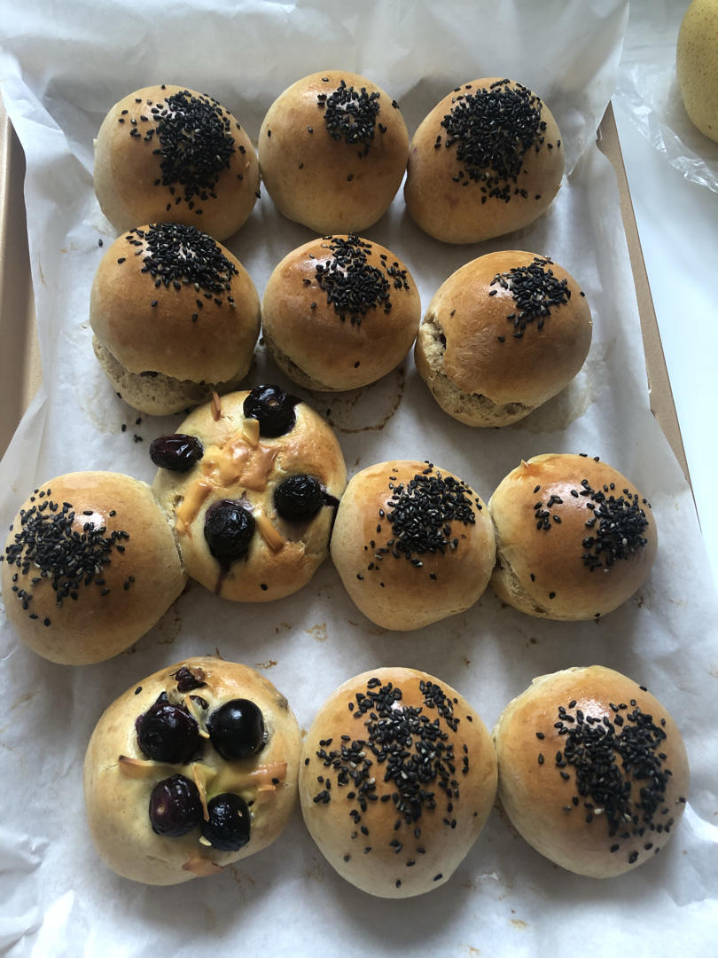 第一次用烤箱做红豆包,面是按照蒸馒头的水量加的,稍微有点硬了~