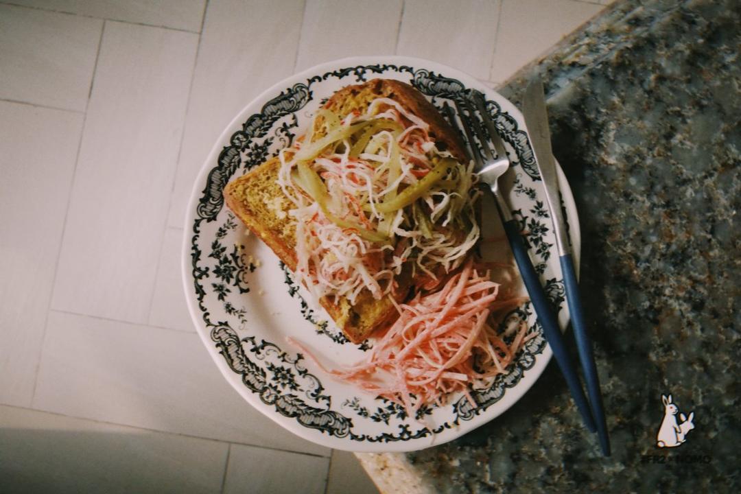 用的后观音的小海绵吐司外脆里嫩的口感好爱,哈哈哈咸土司烤脆后居然吃出一股肉味是怎么回事...