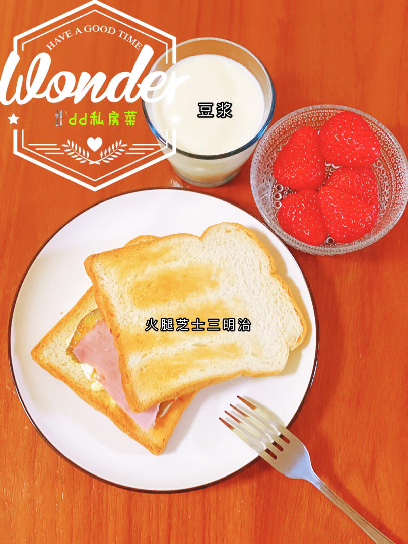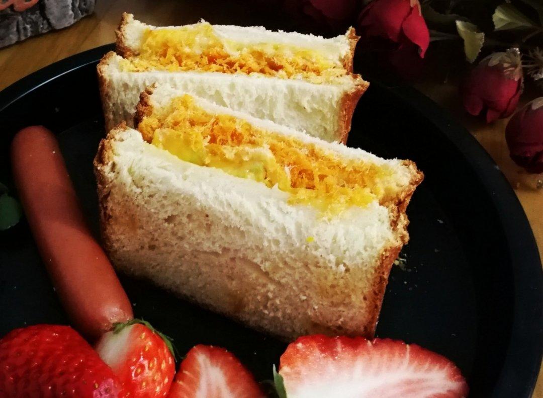 芝士肉松吐司,鸡蛋、甘蓝、西生菜沙拉,沏杯奶、烤个肠,妥妥的了…开饭😁
